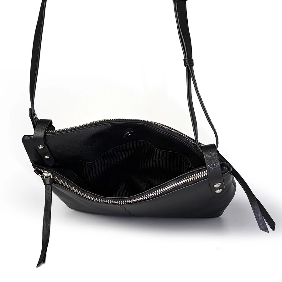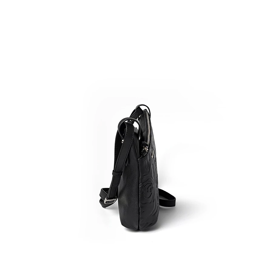 Rosa Crossbody Bag a Rosa Luxe Collection elegáns női bőr táskája, amely prémium Nappa bőrből készült. Aszimmetrikus kialakítása egyedi megjelenést biztosít, míg több rekeszes belső tere praktikus és jól rendszerezhető. Állítható vállpántjának köszönhetően kényelmes viselet a mindennapokban.