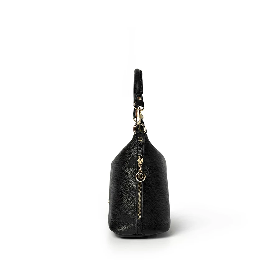 AAurora Shoulder Bag a Dolce Vita Collection letisztult, nőies bőr kézitáskája, amely tökéletes választás a mindennapi eleganciához. Prémium minőségű Dollaro bőrből készült, cipzárral zárható belső térrel és biztonsági zsebbel. Arany színű fém kiegészítői kifinomult megjelenést biztosítanak, az állítható hosszú vállpánt pedig kényelmes viseletet nyújt.​