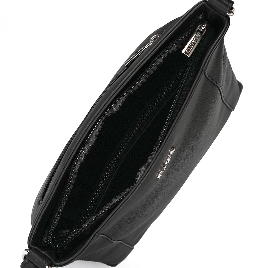 Az egyterű belső kialakítás cipzáras záródással biztosítja a tartalom védelmét. A belső térben egy cipzáras rekesz, egy kisebb oldalzseb és egy külön telefontartó kapott helyet, így minden fontos tárgy rendezetten tárolható. A táska külső hátoldalán cipzáras biztonsági zseb található a gyorsan elérhető értékek számára.