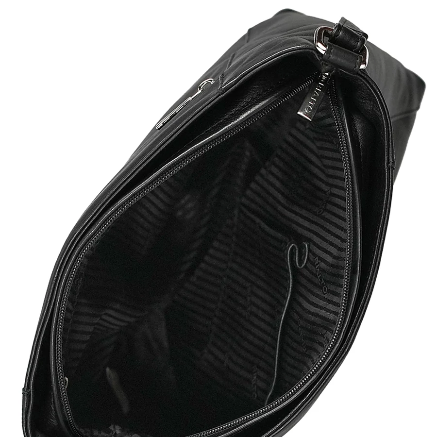 A táska egyterű belső kialakítással rendelkezik, cipzárral zárható fő rekesszel a biztonságos használat érdekében. A belső oldalon egy oldalsó cipzáras zseb és egy külön telefontartó segíti a rendezett tárolást. A külső hátoldalon található cipzáras biztonsági zseb ideális a gyorsan elérhető értékek számára.