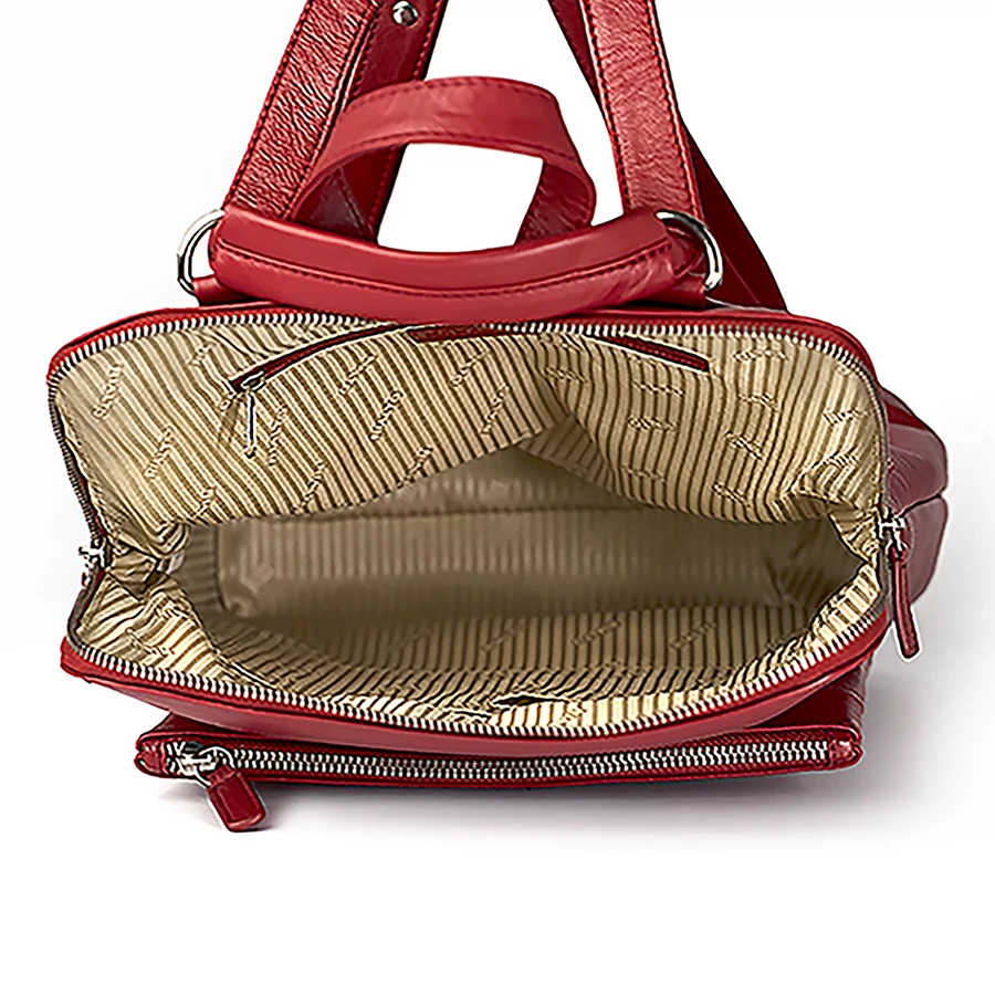 Az Elena Grande Backpack Ruby élénk színével és praktikus kialakításával stílusos választás a mozgalmas hétköznapokra. A Heritage Collection darabjaként készült, puha Nappa bőrből, látványos piros (rosso) árnyalatban.