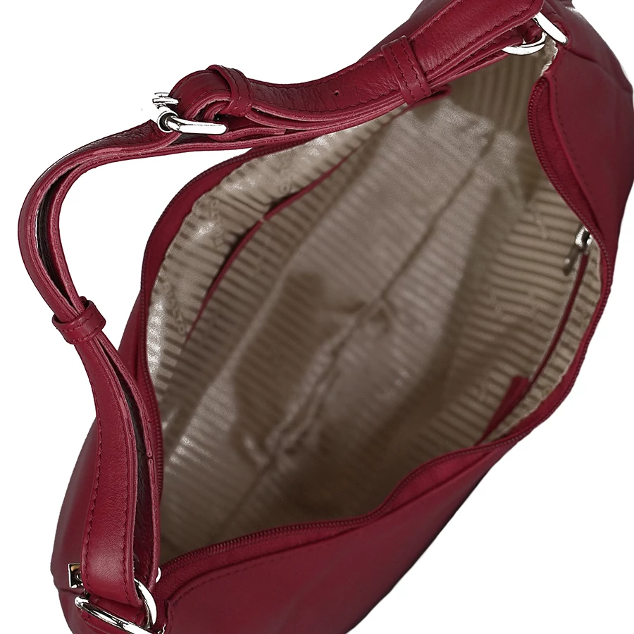 A táska egyterű belső kialakítással rendelkezik, cipzárral zárható fő rekesszel. A belső oldalon található cipzáras zsebpraktikus megoldást nyújt a kisebb tárgyak tárolására. Az állítható rövid pánt mellett a táskához tartozik egy levehető hosszú vállpánt, amely sokoldalú hordási lehetőséget biztosít.