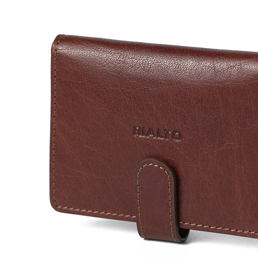 Kompakt, patenttal zárható kártyatartó vachetta bőrből, több belső kártyatartó rekesszel és tágas zsebbel a mindennapi rendszerezett használathoz.