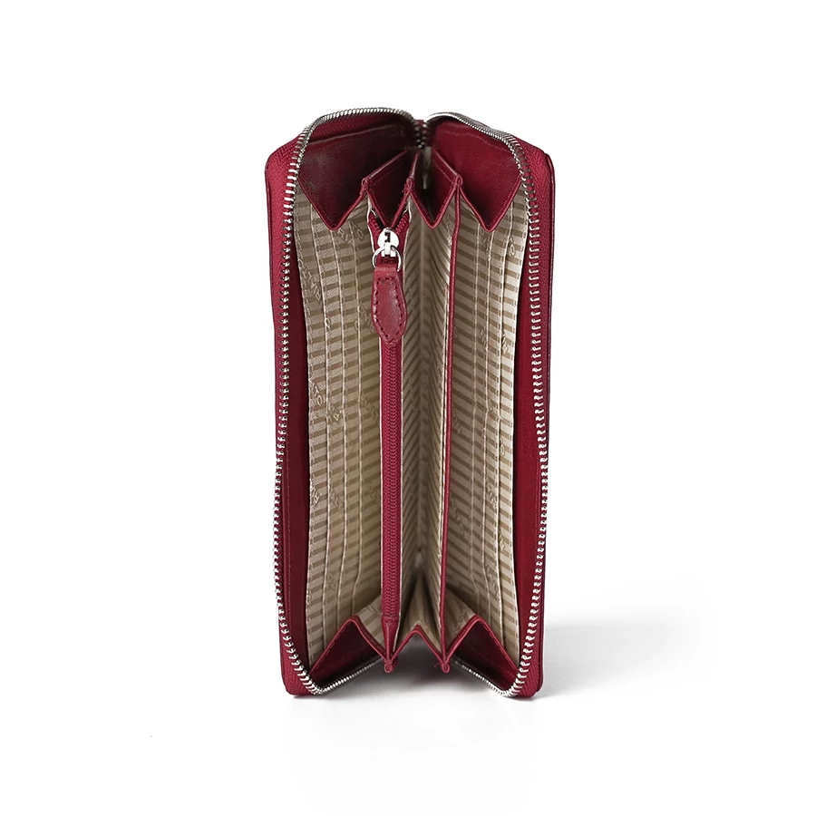 A pénztárca biztonságosan cipzárral záródik, belső tere pedig több fakkra tagolt, így minden fontos dolog könnyen áttekinthető marad. A belső oldalak mentén kártyatartók helyezkednek el, középen egy cipzáras rekesz gondoskodik az aprópénz vagy kisebb értékek elkülönített tárolásáról.