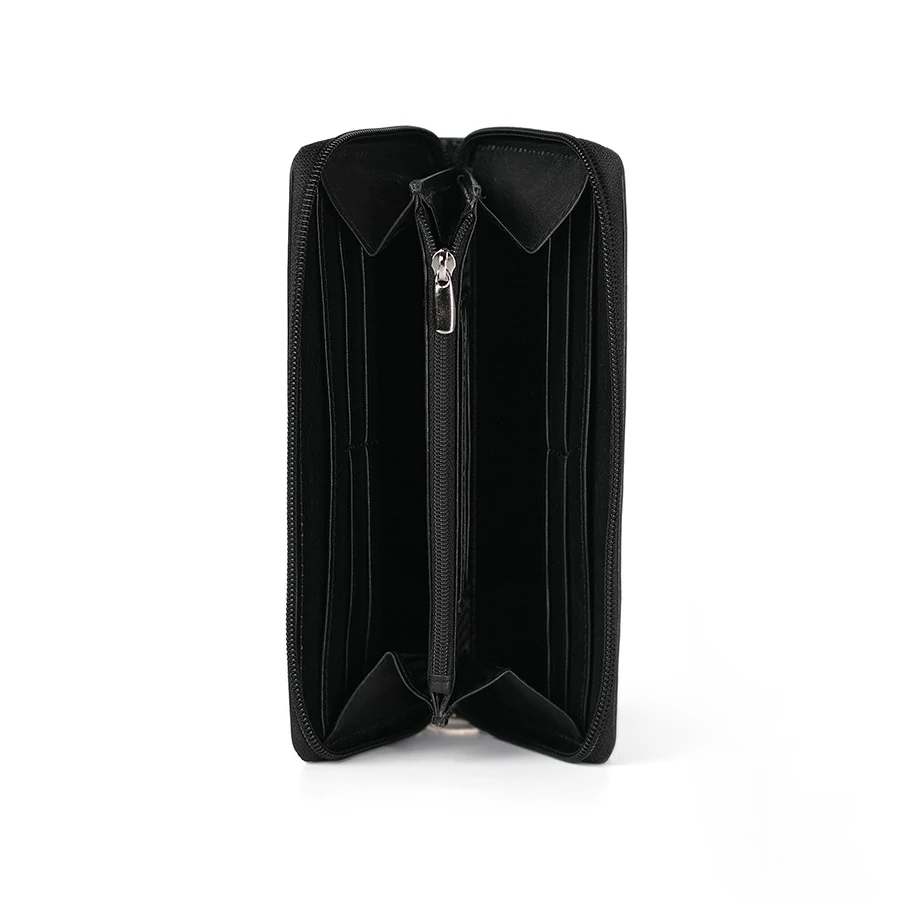 A Linea Pressed Leather Wallet fekete színben kifinomult és időtálló választás a mindennapokra. Nyomott mintázatú, puha Nappa bőrből készült, amely kellemes tapintású és prémium megjelenést biztosít. Cipzárral zárható kialakítása gondoskodik az értékek biztonságos tárolásáról.