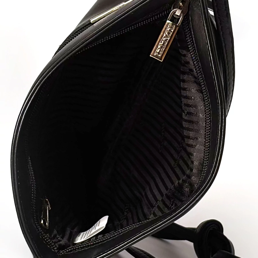 A táska cipzárral zárható, egyterű belső kialakítással rendelkezik, amelyben külön telefontartó és cipzáras belső zseb segíti a rendezett tárolást. Az oldalsó, kívül elhelyezett biztonsági cipzáras zseb gyors hozzáférést biztosít a legfontosabb apróságokhoz.