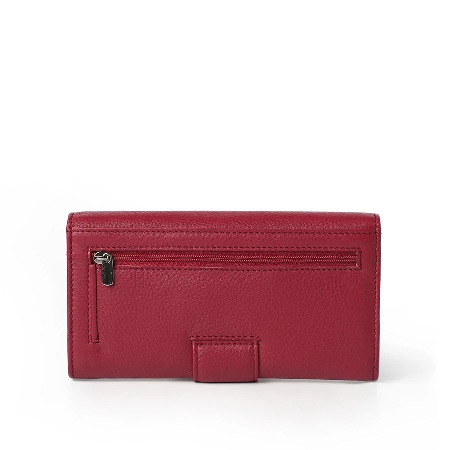 A patenttal záródó elülső rész több rekeszt kínál a papírpénz, kártyák és dokumentumok rendszerezett tárolásához. Az átlátszó igazolványtartó praktikus megoldás a mindennapok során, az aprót külön cipzáras rekesz védi. A hátoldalon elhelyezett cipzáras biztonsági zseb további funkcionális előnyt jelent.