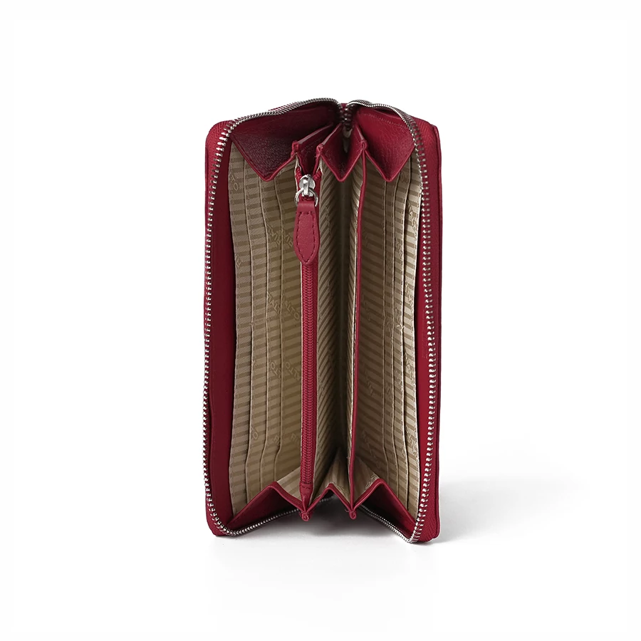 A modell cipzáras záródással készült, amely megbízható védelmet nyújt a tartalom számára. A tágas, többfakkos belső tér segít a bankjegyek, kártyák és iratok rendszerezett tárolásában. Mindkét oldalon kártyatartók, középen pedig egy cipzárral zárható rekesz található az aprópénz vagy kisebb értékek számára.