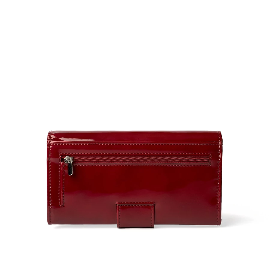 A Patent Leather Wallet Grande – Cherry Gloss kifinomult megjelenést és praktikus belső kialakítást ötvöz, ideális választás mindennapi használatra és alkalmi megjelenéshez egyaránt. A fényes lakk bőr elegáns, nőies karaktert ad a pénztárcának, míg a mély cseresznyepiros árnyalat igazán látványos kiegészítővé teszi.