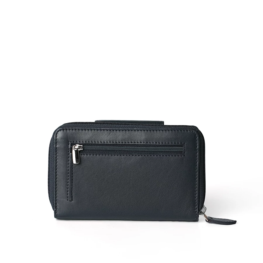 A Nappa Leather Wallet Midi – Navy kifinomult megjelenésű, mégis rendkívül praktikus női pénztárca, amely a letisztult fekete színt és a prémium minőségű nappa bőrt ötvözi. Közepes mérete ideális a mindennapi használathoz, miközben belső elrendezése meglepően sok tárolóhelyet kínál.