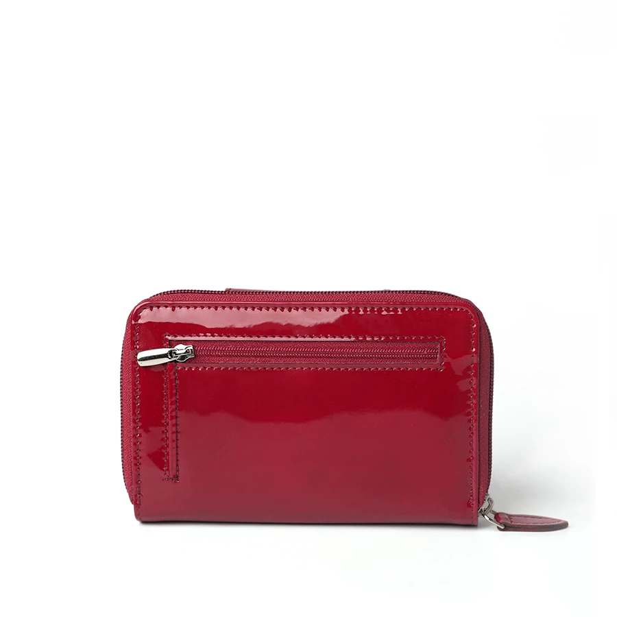 A Patent Leather Wallet Midi – Ruby kifinomult megjelenésével és átgondolt belső kialakításával tökéletes választás azok számára, akik az eleganciát és a funkcionalitást egyaránt fontosnak tartják. A fényes lakk bőr különleges karaktert ad a pénztárcának, miközben tartós és könnyen kezelhető anyag.