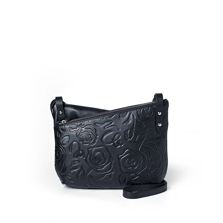 Rosa Crossbody Bag a Rosa Luxe Collection elegáns női bőr táskája, amely prémium Nappa bőrből készült. Aszimmetrikus kialakítása egyedi megjelenést biztosít, míg több rekeszes belső tere praktikus és jól rendszerezhető. Állítható vállpántjának köszönhetően kényelmes viselet a mindennapokban.