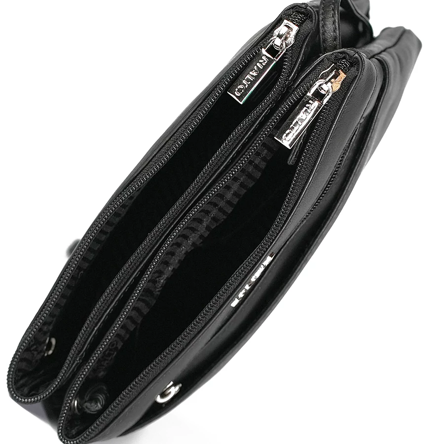 A táska két cipzárral zárható fő rekesszel és egy középső rekesszel rendelkezik, így a tartalom jól elkülöníthető és átlátható. Az elülső részen egy cipzáras zseb és egy nyitott zseb található a gyors hozzáféréshez, míg a belső térben egy cipzáras zseb segíti az apróbb tárgyak biztonságos tárolását.
