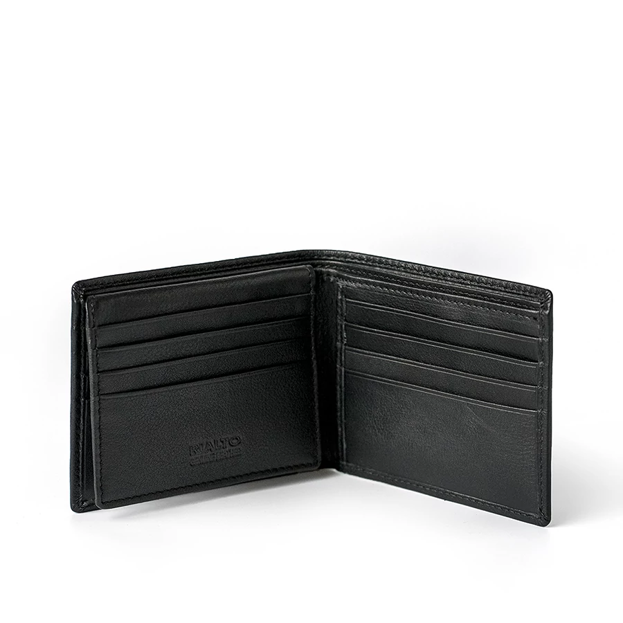 Ez a kihajtható férfi pénztárca extra tárolókapacitást kínál klasszikus formában. A belső rész több kártyatartót, igazolványtartót, valamint tágas papírpénztartó fakkokat tartalmaz. Ideális mindennapi használatra.