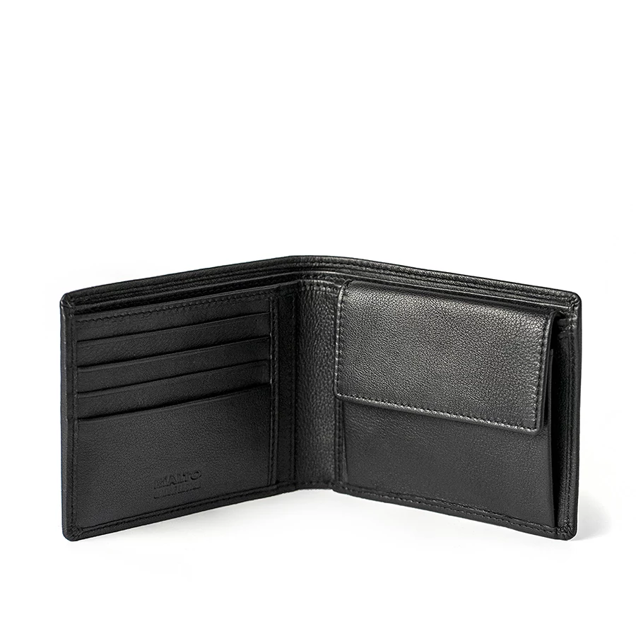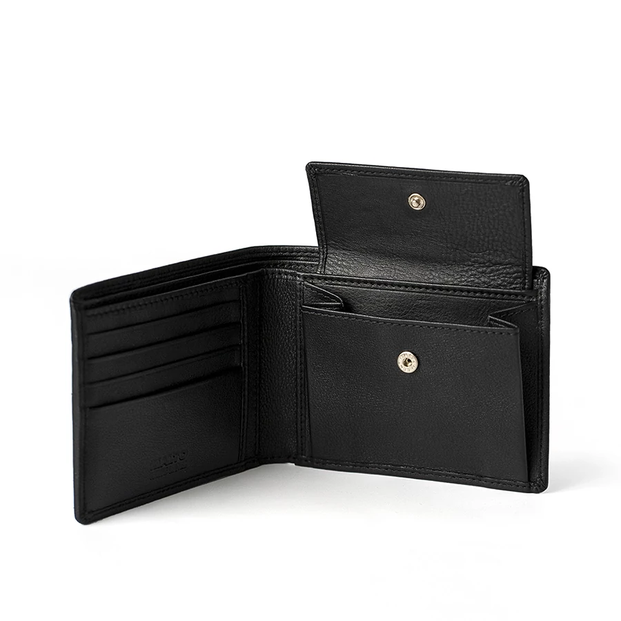 A pénztárca több igazolványtartóval és számos kártyatartó rekesszel rendelkezik, az aprópénz számára pedig külön, patenttal zárható rekesz biztosít kényelmes és biztonságos tárolást. Kompakt méretének köszönhetően kényelmesen elfér nadrág- vagy zakózsebben is.