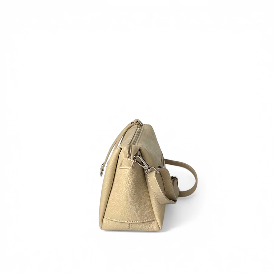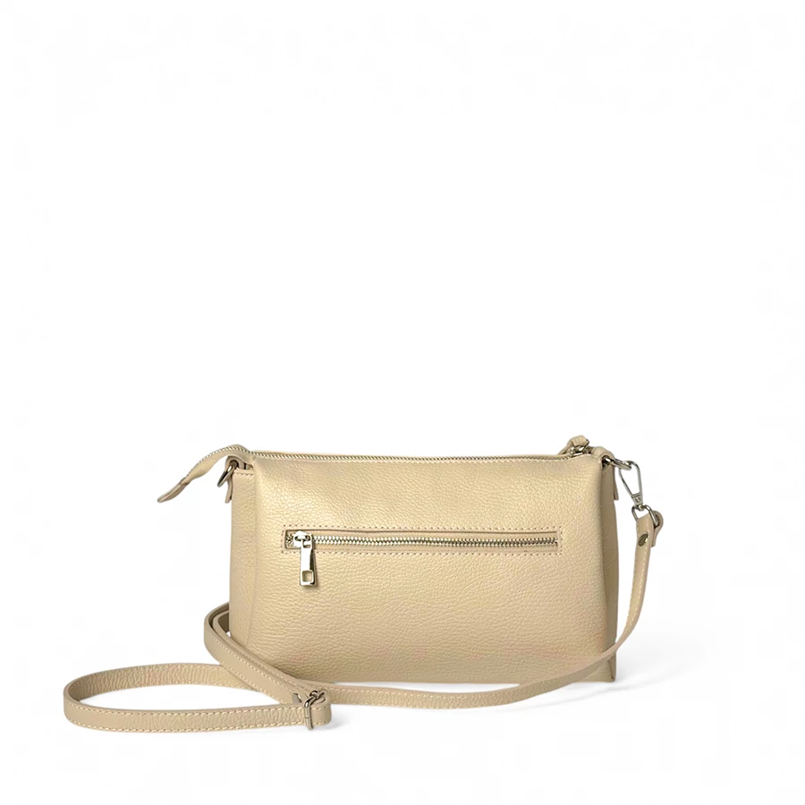 Valeria Crossbody Bag elegáns női bőr átvetős táska prémium Dollaro bőrből, amely praktikus háromrekeszes kialakításával ideális a mindennapokra. Cipzáras zsebei és jól szervezett belső tere biztonságos és átlátható tárolást biztosítanak. Állítható vállpántjának köszönhetően kényelmes viselet egész nap.